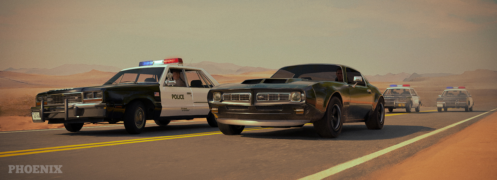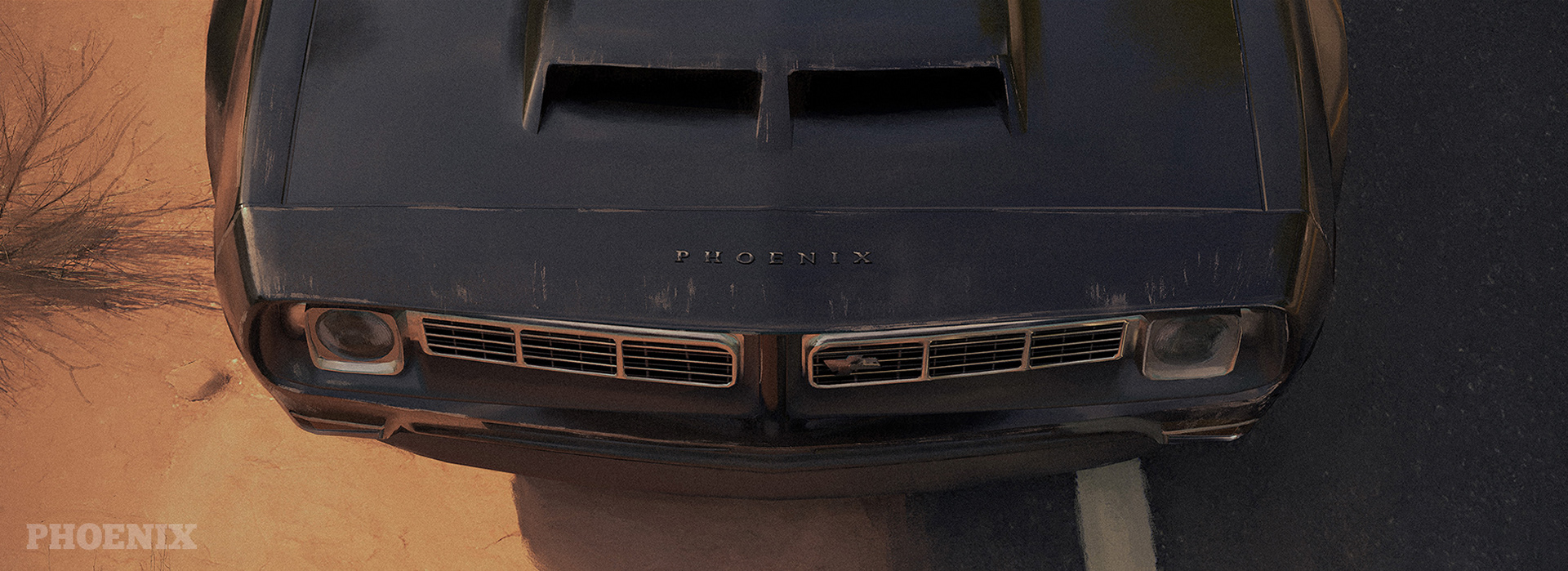 Here at Grainhouse, Phoenix is a creative study inspired by the high octane energy of films like Mad Max, Bullitt, and Vanishing Point. The project began with a detailed car model rendered in Blender, setting the foundation for a cinematic look and feel. Textures, lighting, and atmosphere were refined in Photoshop, while Procreate supported early concept sketching and design exploration. The result is a visual homage to classic car cinema that captures grit, motion, and mood through a hybrid workflow of traditional artistry and modern digital tools.